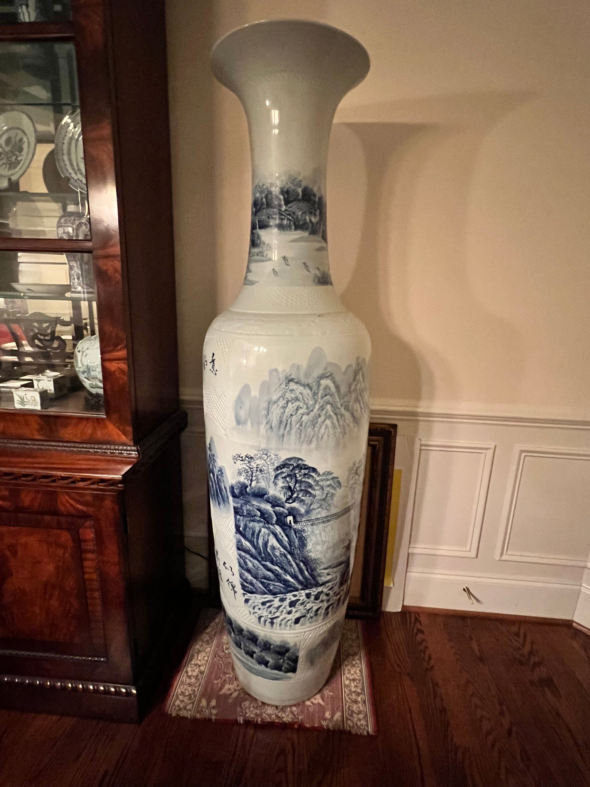 $8888 Giant Vintage Blue White Vase, about 6' high, super heavyVariant sold out or unavailable